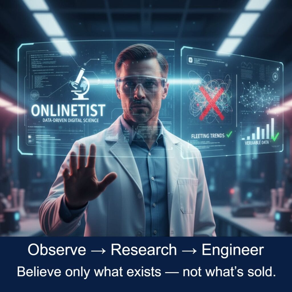 It’s not just a philosophy — it’s a disciplined, scientific approach to digital challenges. An Onlinetist observes, forms hypotheses, and engineers solutions based on logic and verifiable data — not fleeting trends.